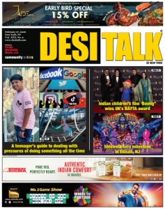 February 27, 2026 New York, NY Vol. XXX, No. 9 www.desitalk.com Published by Parikh Worldwide Media, LLC. community c o l o r s IN NEW YORK r AUTHENTIC INDIAN COMFORT in minutes. #SonyTVUSA www.setindia.com PHOTOS:MISCELLANEOUS EARLY BIRD SPECIAL w w w . j a d e e a t e r y . c o m *NOT COMBINABLE WITH OTHER DISCOUNTS |*DOES NOT INCLUDE ALCOHOLIC BEVERAGES * | EXCLUDED FROM HAPPY HOUR D i n e i n O n l y i n O f o l l o w u s @ j a d e e a t e r y 15% OFF Sunday - Thursday | 3pm -6pm Weekly PORT WASHINGTON, NY FOREST HILLS, NY HICKSVILLE,NY PAGE 14 A teenager’s guide to dealing with pressures of doing something all the time PAGE 27 PAGE 9 Indian children’s film ‘Boong” wins UK’s BAFTA award Shivleela sets milestone in Edison, NJ
